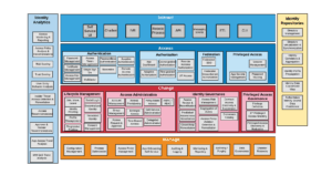 - Grey – indicates capabilities that the organization IAM has in place in some capacity, although it could be likely that some augmentation may be required to improve functionality and ubiquity to fully meet the organization’s requirements. An example here is Federation/SSO which may be relatively mature in many organizations – but could be enhanced over the next few years.